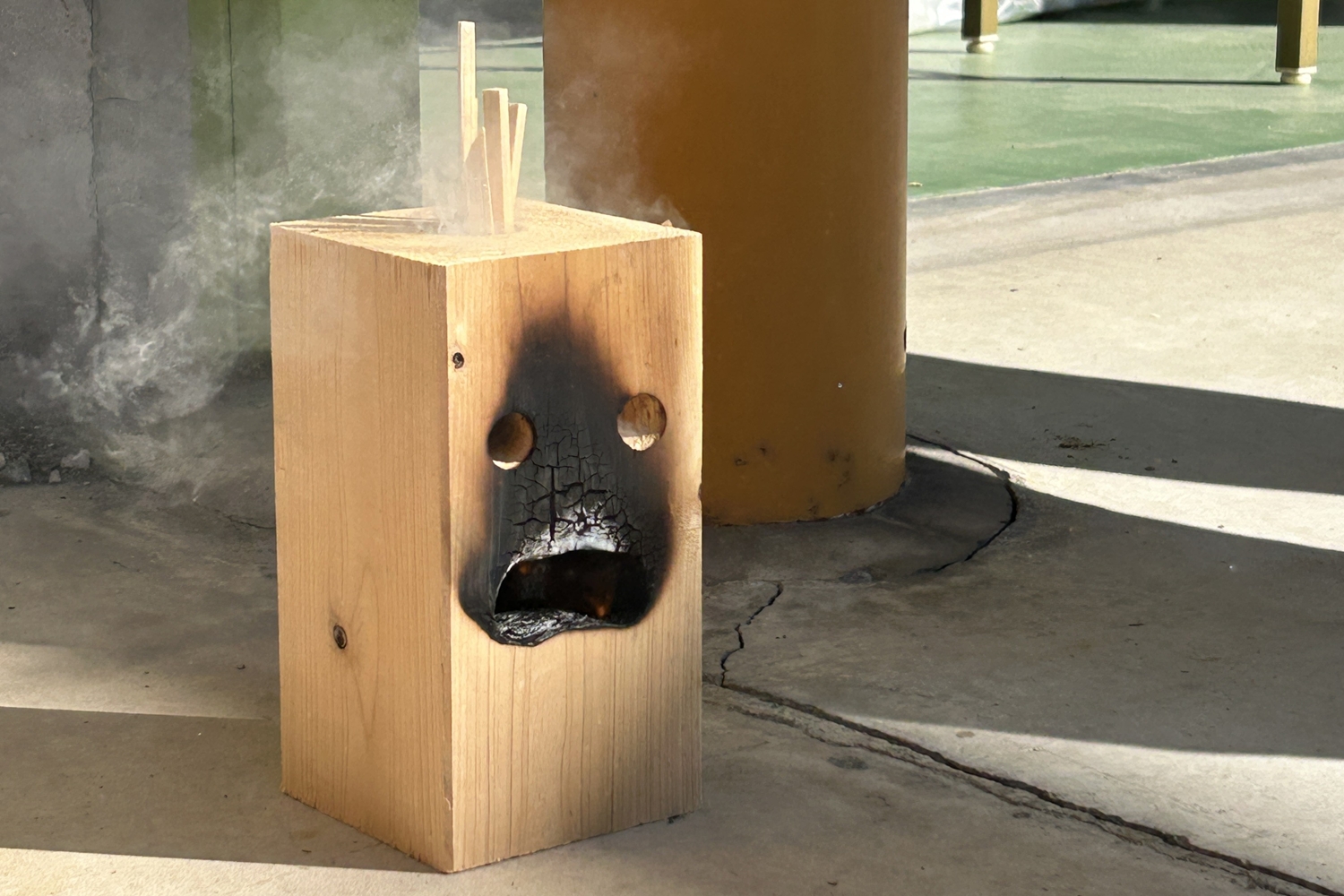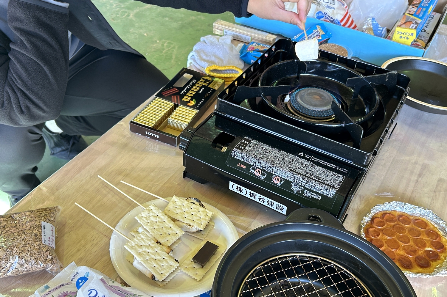 薪割りが終わったら、スモアサンドとコーヒーでひと休み。