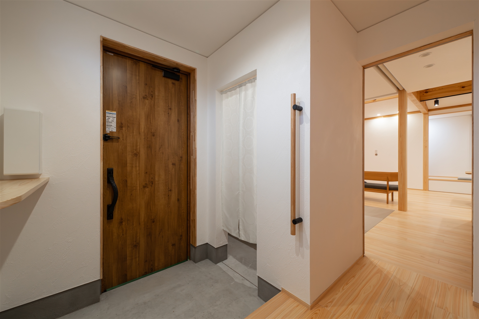 のれんで目隠しした使い勝手の良い玄関収納