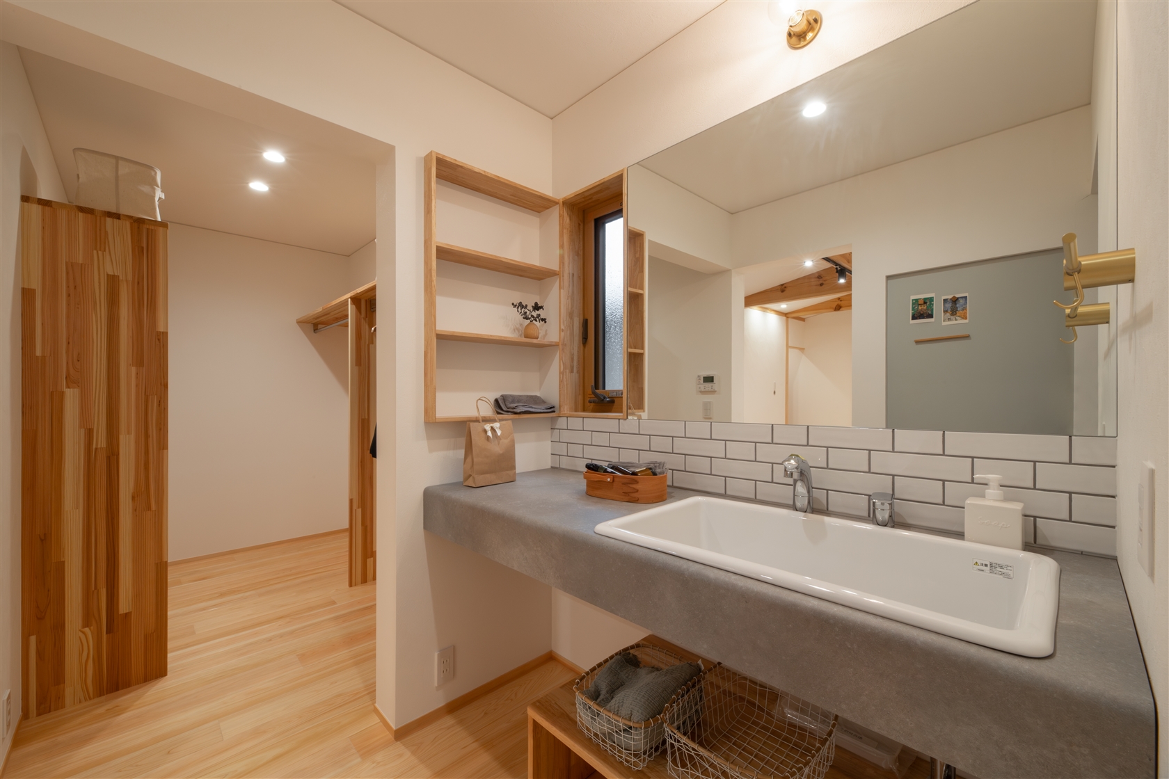 タイルがアクセントになった造作洗面台